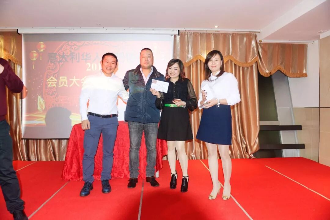 据悉,年会由秘书长刘徐静主持。在年会上,还有丰富的抽奖活动:苹果手机、华为手机 、飞机票、红酒等。意大利华人酒吧协会会长王焱军还赞助王朝大酒店价值1000欧元的消费眷和 红包等。