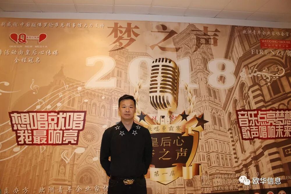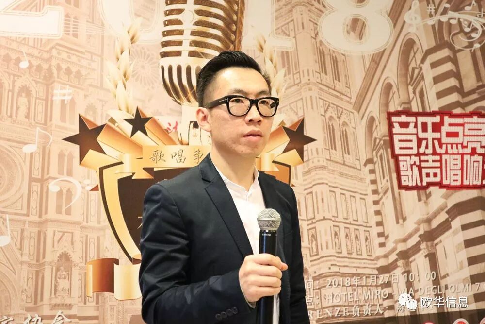 ▲赛前,欧洲青年企业家协会黄勤海会长祝愿所有选手赛出好成绩,为消除大家紧张的心情,他首先唱了一首耳熟能详的歌曲“别怕我伤心”。