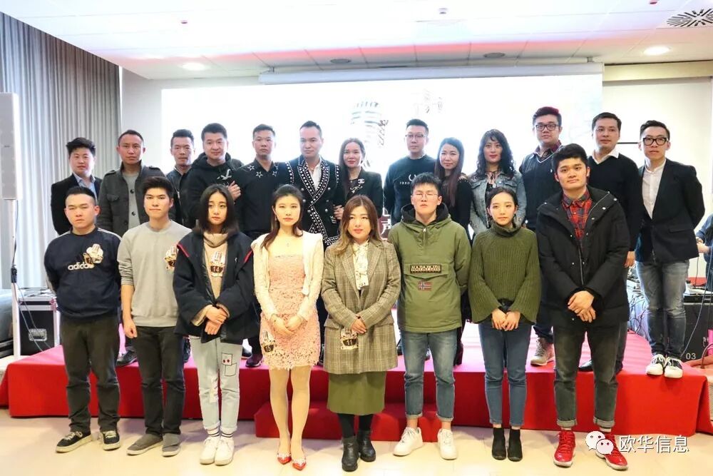▲欧洲青年企业家协会会长助理胡炯榜、常务副会长王金健、理事长詹晓孟、会务长郑瑞民、会长黄勤海、会长夫人朱小燕、常务副会长徐金华、执行会长陈进华与华星艺术团团长尹名兴、大赛四位评委:吉朝琳、黄蓉、张超颖、张明宇及进入总决赛的选手们合影