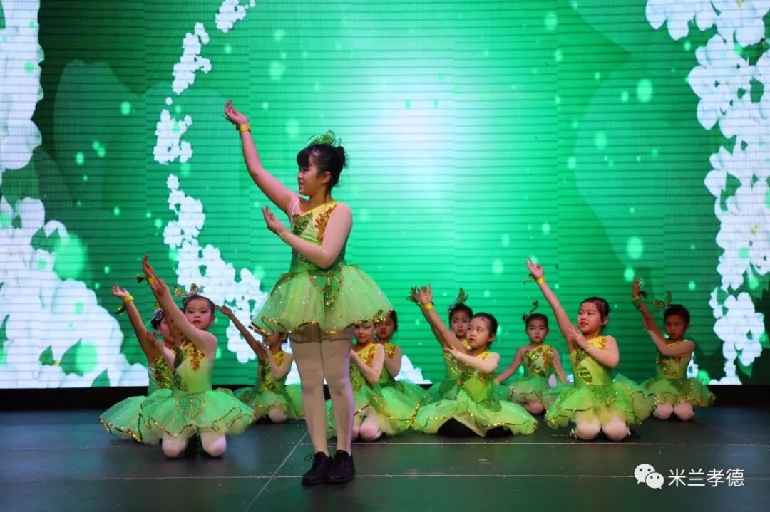 孝德低年级的孩子为大家带来了一系列带有童真的舞蹈表演,展现了少儿的天真美好。