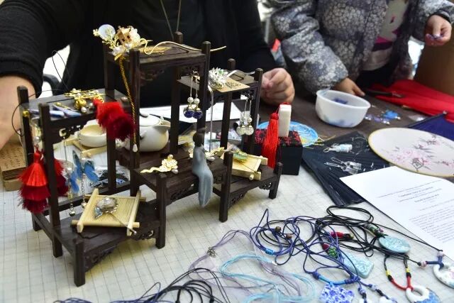 现场不仅有中国和藏文书法、国画、工笔画,陈诗哲同学带来了精美的剪纸,心灵手巧的祁丽君同学还制作了各种服饰、手工制品挂件等等,真是让人大饱眼福。