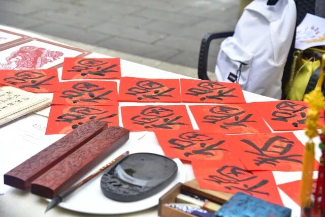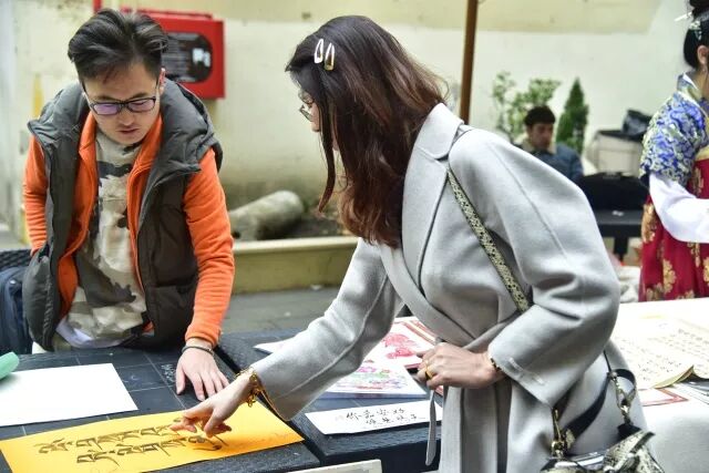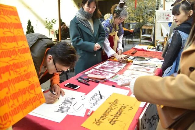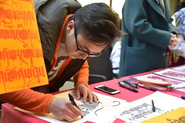 现场还教起做手工、用藏文和中国书法分别写你名字、送福字、写春联等活动,年味十足!