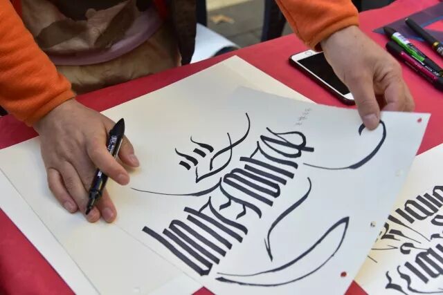 罗马学联主席李秦鹏为大家现场书法赠字