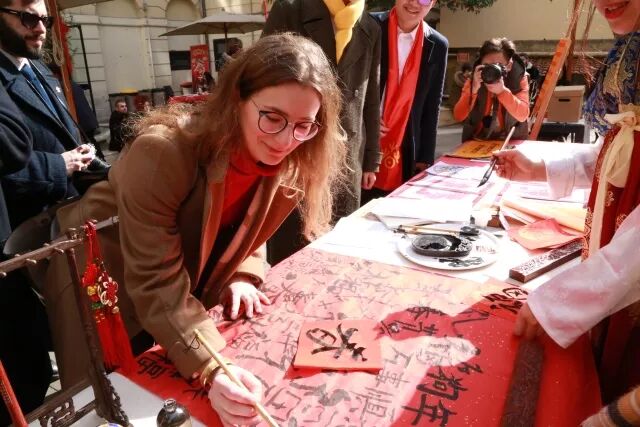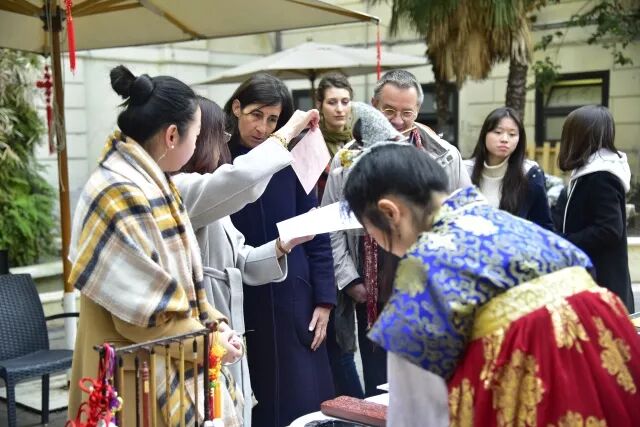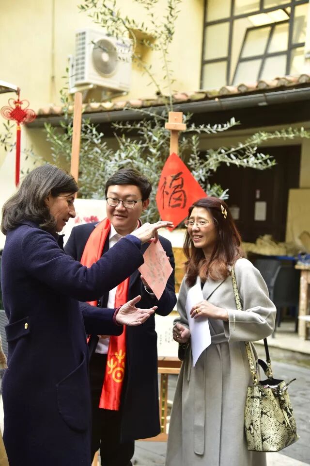 我们还邀请了中国驻意大利大使馆教育处胡俊宏老师、罗马美术学院对外交流办公室主任Stefania Teodonio、秘书处主任Raffaella Troti、罗马美院学生会主席Angerica Speroni、全意学联副秘书长、罗马地区学联主席李秦鹏出席本次庙会。