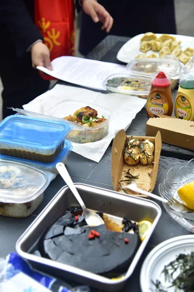 全场最受欢迎的,莫过于中国美食了。为了给大家尝到正宗的中国菜,不少同学亲自下厨,除了经典的饺子、包子、春卷,还带来了各地域的小吃。尤其是刘慧、刘明洋和祁丽君同学,利用课余时间、连夜加班加点地给大家做吃的(橙子简直是太感动了,在这里再一次谢谢你们)如煎饺煎豆腐、卤肉饭、咖喱饭、龟苓膏、豆沙包、章鱼小丸子等等,让大家尝到中华美食的特色!