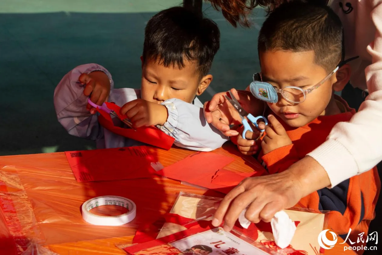 小朋友正在剪纸。人民网 林铭贤摄