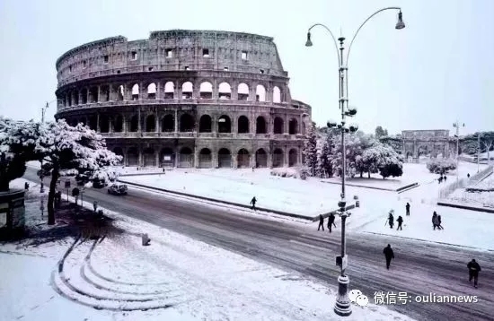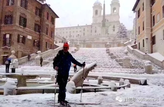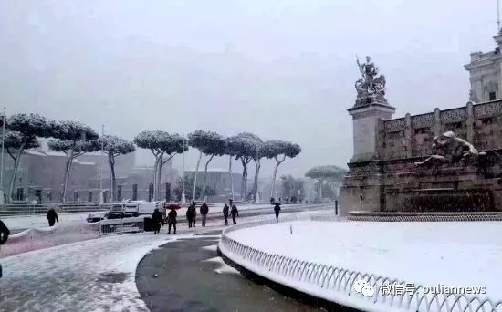 大雪纷飞、银霜满地,游客和市民把古罗马视作天然雪场,滑雪、拍照,堆雪人,人们尽情地感受着冬日的欢乐与浪漫。(张宇典)