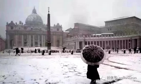 大雪后的梵蒂冈广场。(欧联网 张宇典 摄)