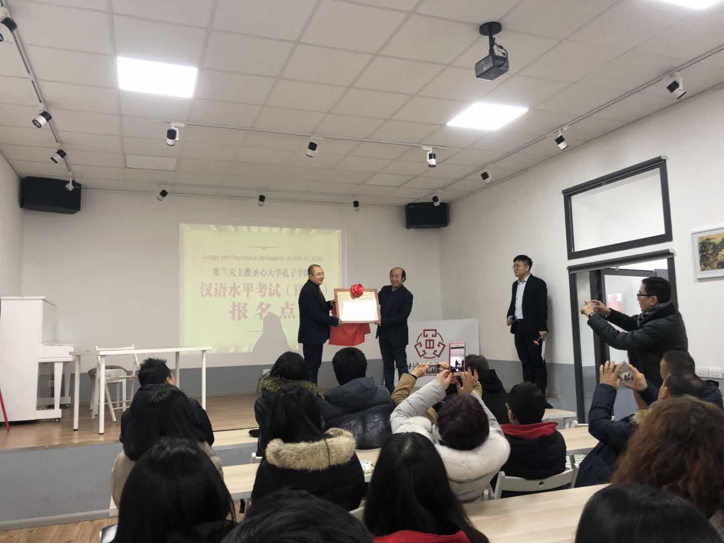 3月4日下午,米兰天主教圣心大学孔子学院院长郁有学教授莅临米兰中国文化中心,与中心主任李群来先生共同揭牌,从此,圣心孔院汉语水平考试(HSK)报名点正式落地米兰中国文化中心。