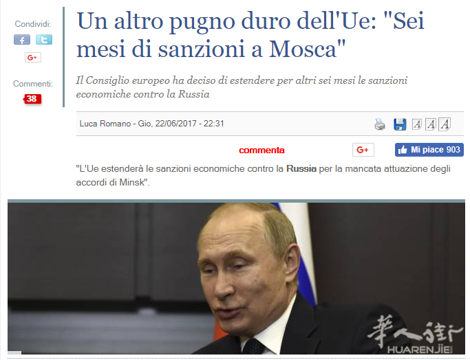街友们,大家好!周一快乐!周一的国际新闻时间,华人街小编准时和您见面,上周在欧盟内部最大的事件,莫过于欧盟理事会决议继续延长半年对于俄罗斯的严厉制裁。今天华人小编把普京大帝的惨痛遭遇翻译给大家,该文章发表在意大利知名的时政报刊 Il giornale: