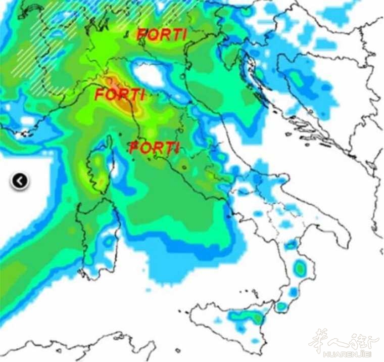 根据意大利气象网站Meteolive消息,周四下午,意大利西北部地区将首先迎来雨水天气,而后向东部转移,降雨将于当天傍晚时分迅速覆盖北部地区;15日至16日夜间,除阿布鲁佐大区(Abruzzo)外,整个北部地区及中部地区将迎来雨水天气,南部部分地区也将迎来降雨。周五上午,意大利西北部地区天气将逐渐好转。