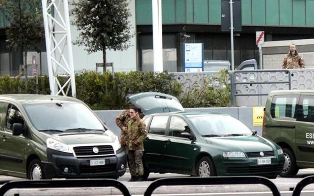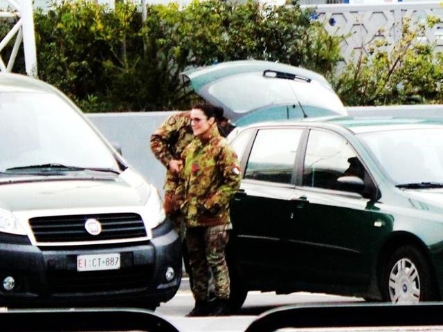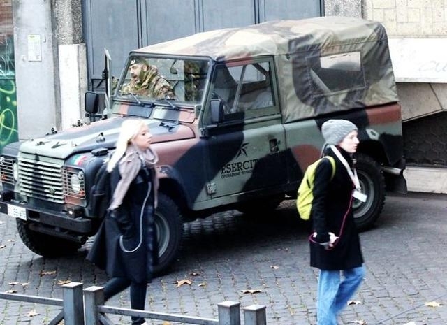 意大利军人荷枪实弹执勤站岗