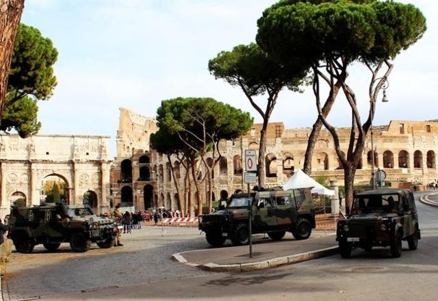 意大利军人在罗马斗兽场附近站岗