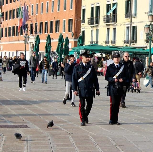 意大利的威尼斯水城 警方在街上执勤巡逻
