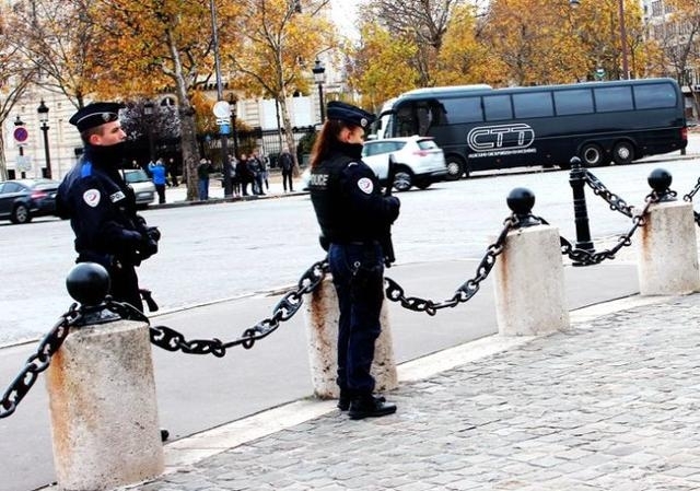 法国警方在街上执勤站岗