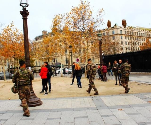 法国军方在凯旋门下巡逻