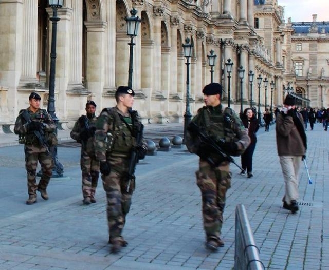 法国军人在卢浮宫巡逻执勤