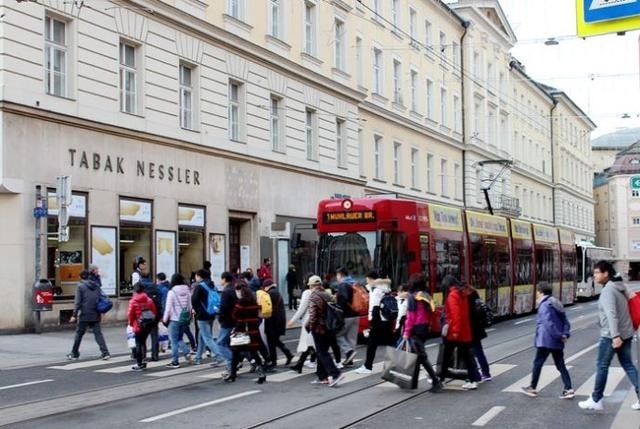 奥地利的因斯布鲁克市街上看不到警察和军人