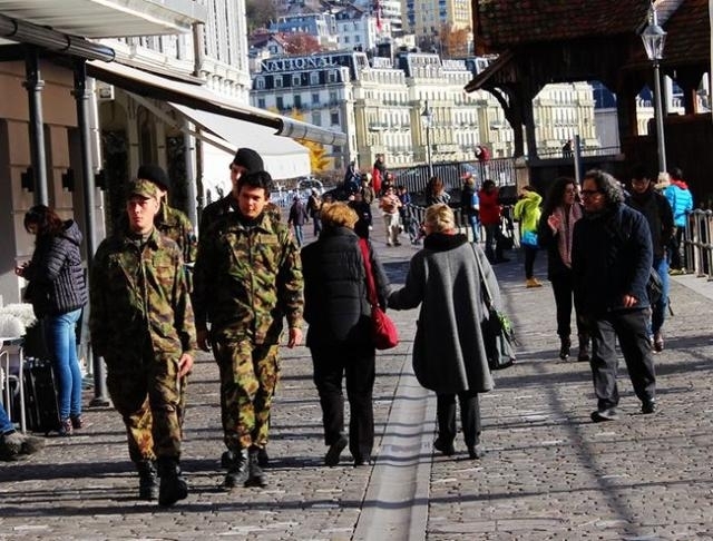 瑞士穿军装的走在街上 没有任务