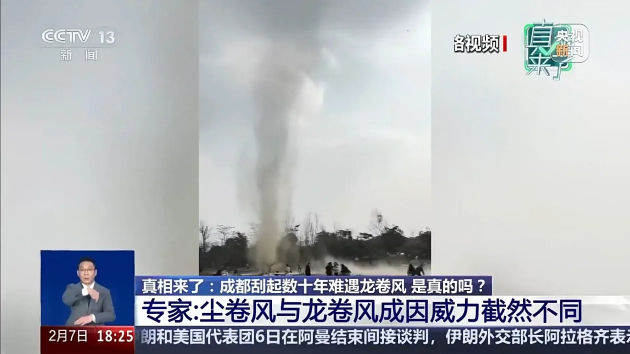 2月1日下午2点左右,开阔的草坪上,不少市民正在惬意露营。突然,一阵旋风毫无预兆地出现,中心卷起大量尘土,形成明显的涡旋,周边数顶帐篷被瞬间掀翻,市民纷纷避让。据了解,1961年至今,成都从未观测到龙卷风,所以很多人都感到非常惊讶,难道这是遇到了数十年难遇的龙卷风吗?
