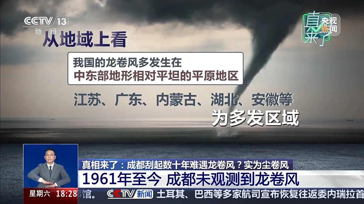 1961年至今 成都未观测到龙卷风