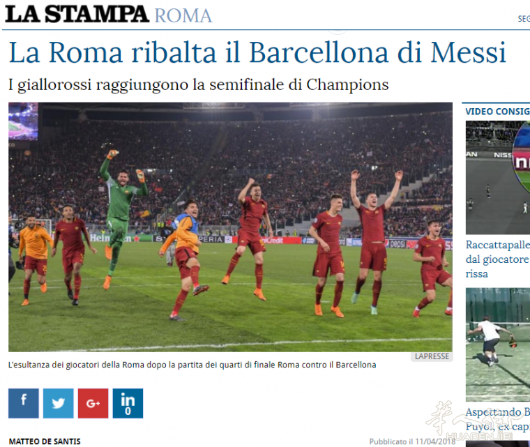 街友们,大家好~!周三快乐!昨夜的罗马城成为了球迷的不夜城,欧冠1/4决赛次回合焦点战,罗马主场3-0击败巴萨,总比分4-4战平对手,但因为有1粒客场进球,罗马成功晋级四强。哲科开场第6分钟打破僵局,第56分钟德罗西点球建功,马诺拉斯第82分钟头球破门。