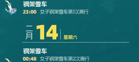 中国队殷正、陈文浩、林勤炜将亮相男子钢架雪车赛场,当天进行前2轮滑行。来自浙江温州的林勤炜在2025年世界杯男子个人项目中以1分42秒69夺冠,成为浙江首个冬季项目个人世界冠军。2025年他还与队友搭档获得国际雪车联合会钢架雪车世界杯混合团体冠军,实现中国队该项目世界杯金牌“零的突破”。此次冬奥会,期待他创造更好的成绩。