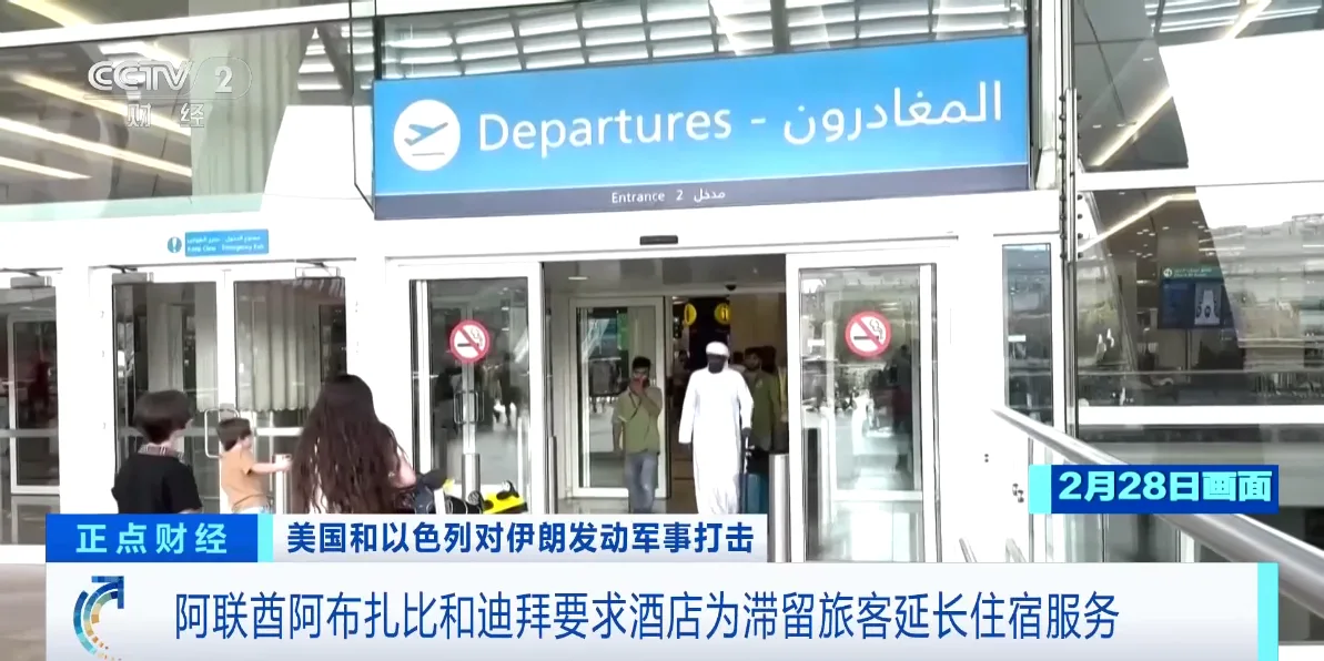 据阿联酋当地媒体3月1日报道,因地区局势造成当地航班中断,阿联酋阿布扎比和迪拜的有关部门要求当地酒店为滞留的旅客延长住宿服务。