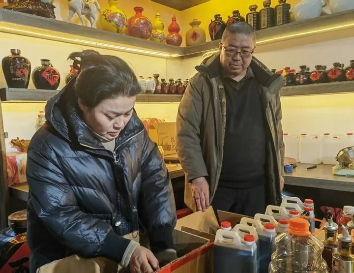图为来自山东的游客正在碛口古镇的红枣产品专营店里购买红枣醋。新华每日电讯记者柴婷 摄