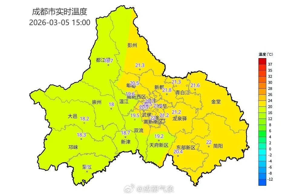 成都最高气温将从今天22℃