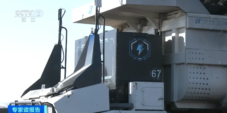 总台央视记者宁坤:在目前全球在运行规模最大的无人驾驶纯电矿卡项目中,一辆辆“大家伙”正在将2公里外开采到的煤矿运到这里卸下,整个过程中,车辆的行驶和装卸都是全自动完成的。车辆前部完全没有驾驶舱,取而代之的是一块块大电池。
