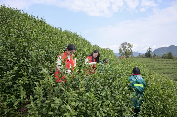 现场,身着红色马甲的党员志愿者们化身“采茶能手”,分工明确、干劲十足。在茶农的指导下,志愿者们快速掌握采摘要领,指尖翻飞间,一颗颗嫩绿的茶芽被小心翼翼地采下,放进茶篓。