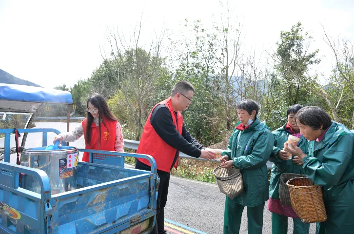 此外,有的志愿者则为忙碌的茶农们送去温热的茶水,叮嘱大家注意休息、劳逸结合,用贴心服务为茶农驱散疲惫,还帮助茶农登记、核对茶叶重量。