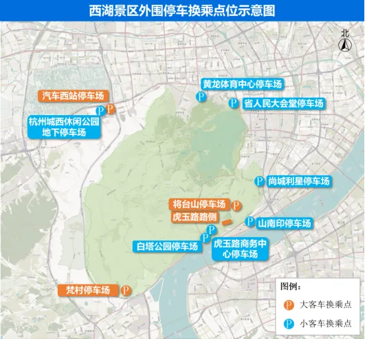 西湖景区停车资源紧张,强烈推荐“外围停车+公交换乘”的出行方式。前往太子湾公园的游客建议停放至虎玉路商务中心、山南印停车场,换乘公共交通进入。