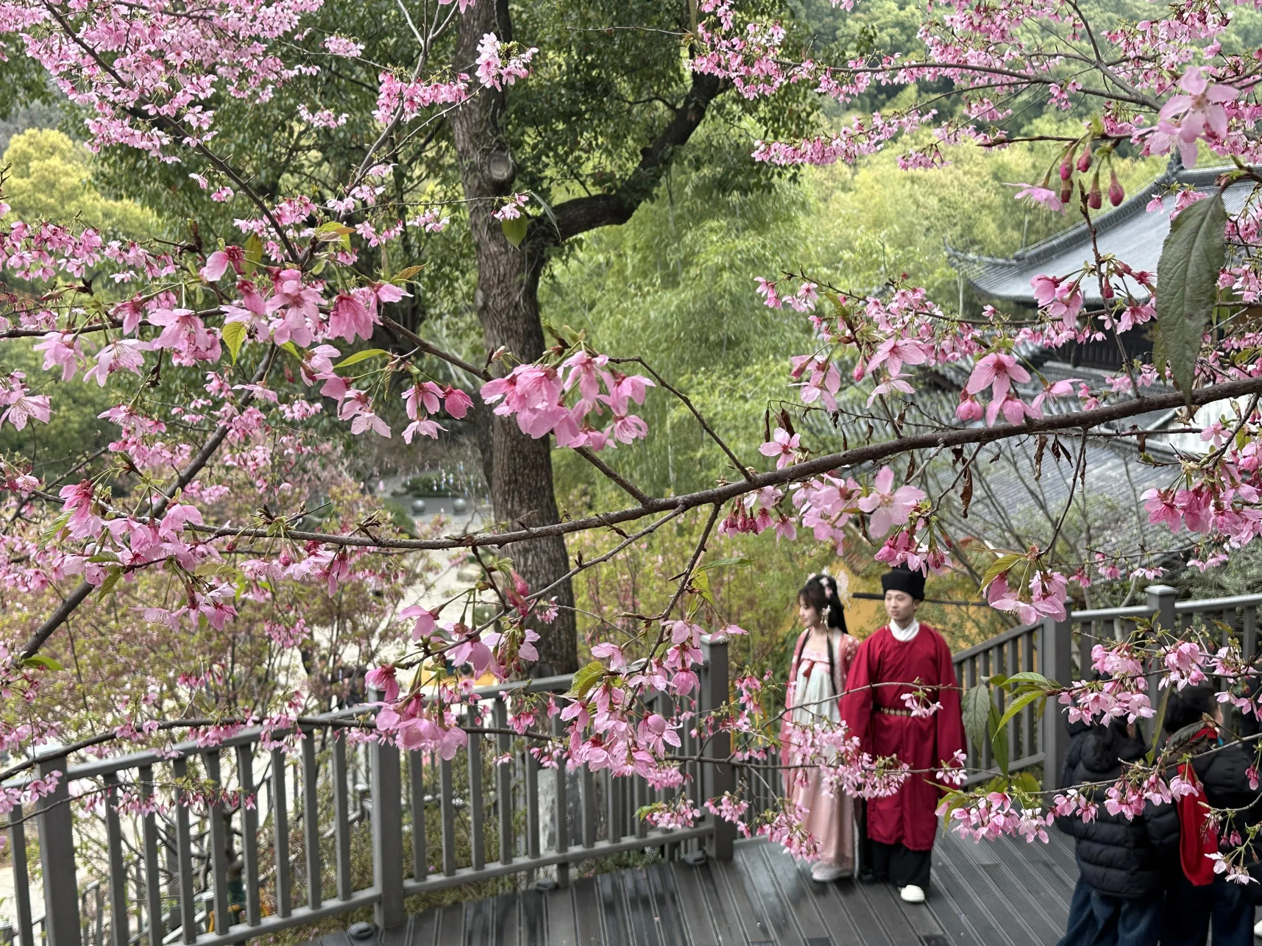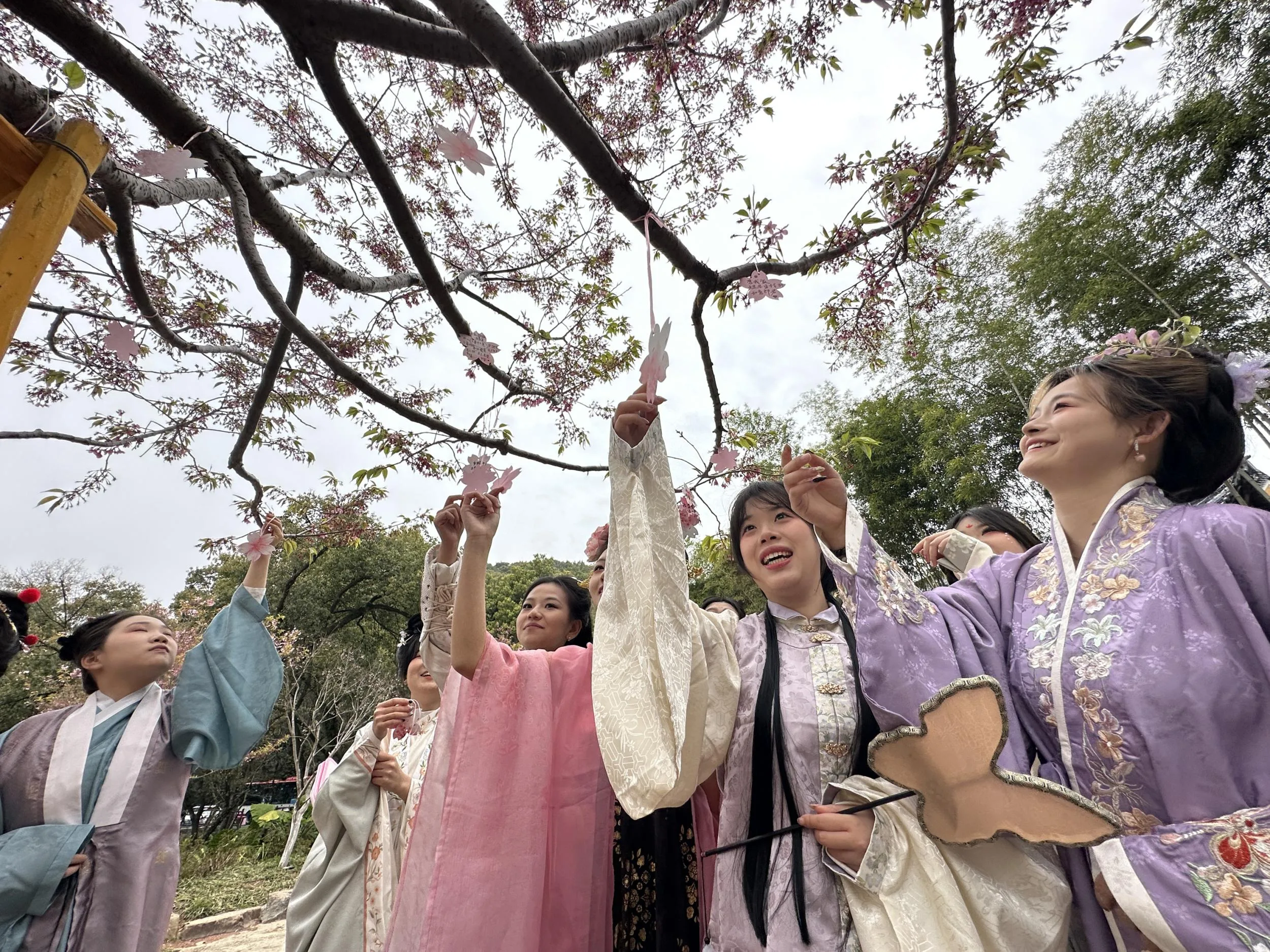 温州大学人文学院、瓯玉汉服社为市民带来沉浸式汉服雅集体验,以樱为媒、以礼传情,为春日添彩、为园博助力。