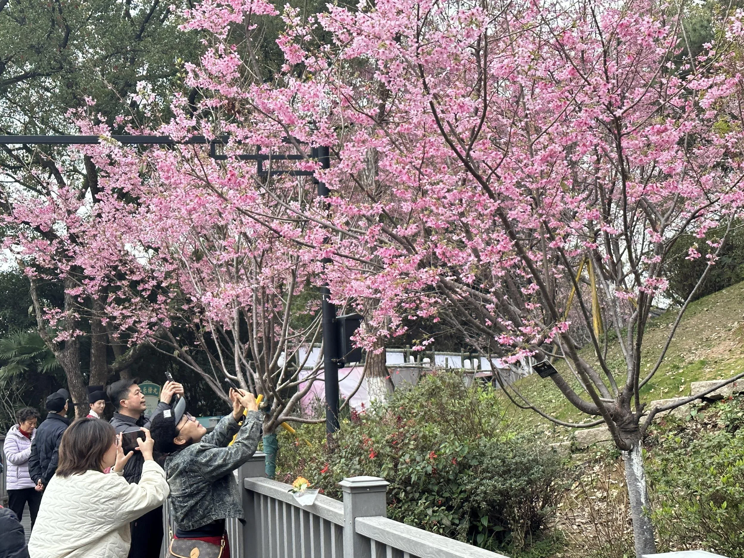 历经春雨滋养,园内早樱迎来全盛观赏期,粉樱如云、漫栈飘香,吸引了众多市民前来。