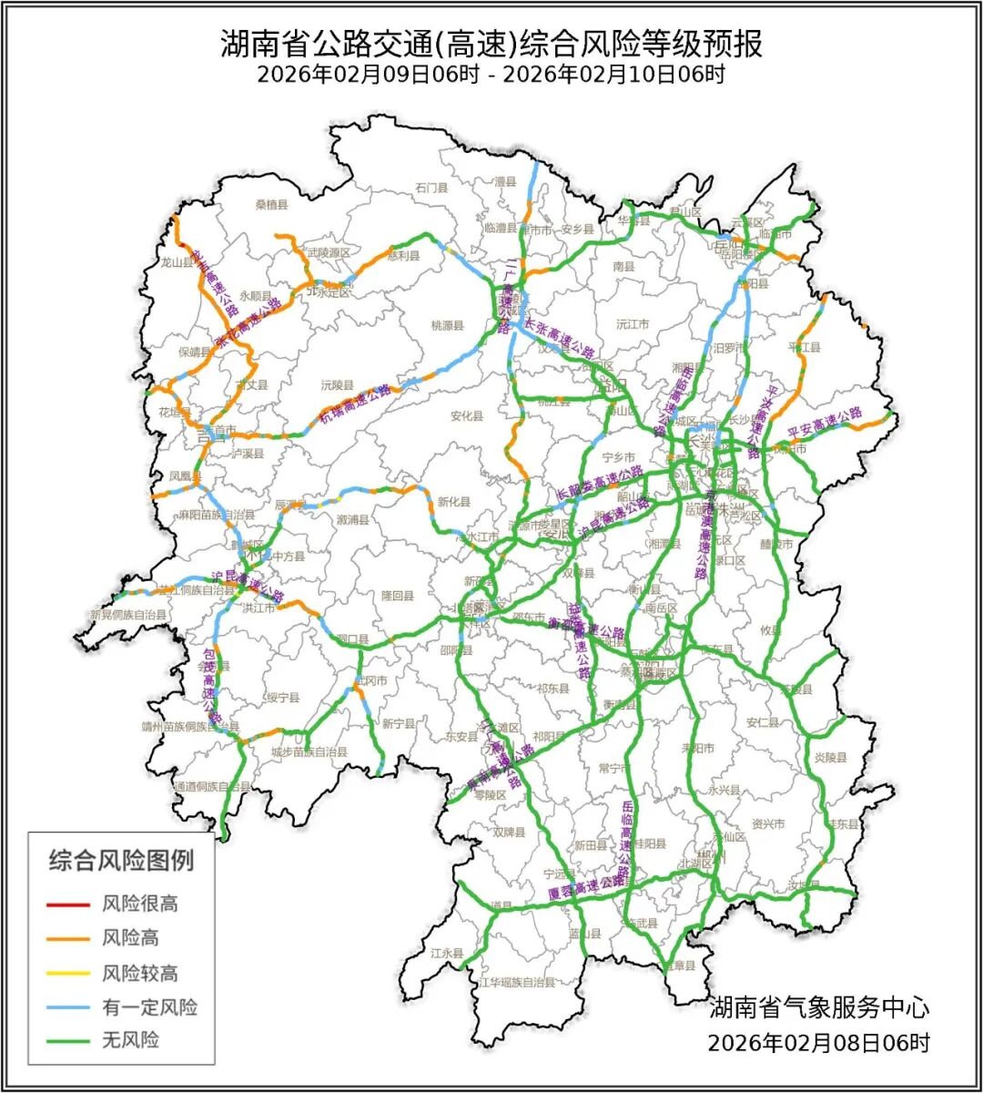 2月8日08时至10日08时湖南省航道气象风险等级预报图