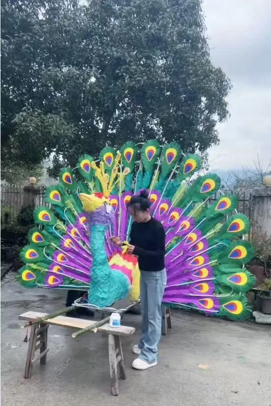 第一次挑战大型花灯,姐弟俩毫无经验可循,全程摸着石头过河,凭借默契配合与天马行空的创意摸索前行。恰逢龙年,两人分工协作,干方杰负责龙灯,干滢晓制作孔雀灯。