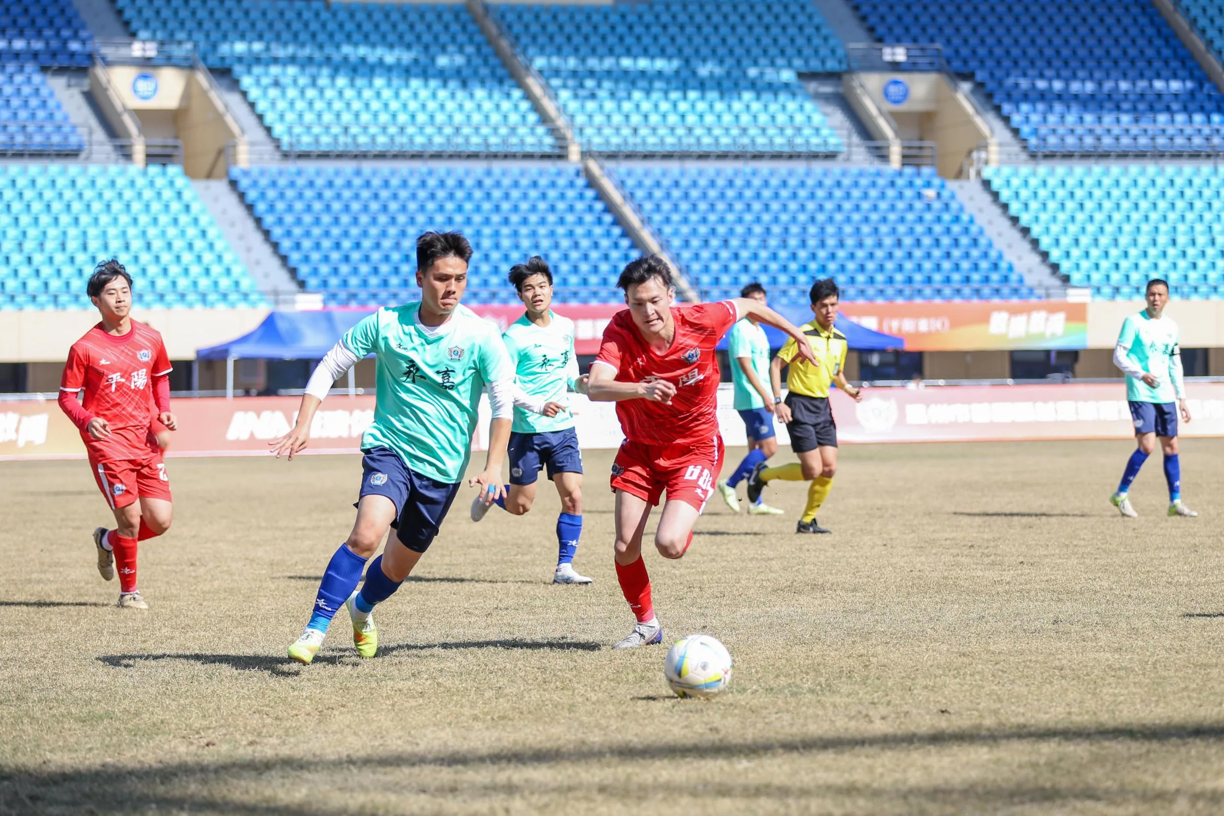 平阳队在平阳体育中心体育场主场迎战永嘉队。第33分钟,平阳队率先打破场上僵局,28号曾平豪在永嘉队禁区右路接队友传球后,推射破门,1比0。平阳队带着一球领先优势进入下半场。