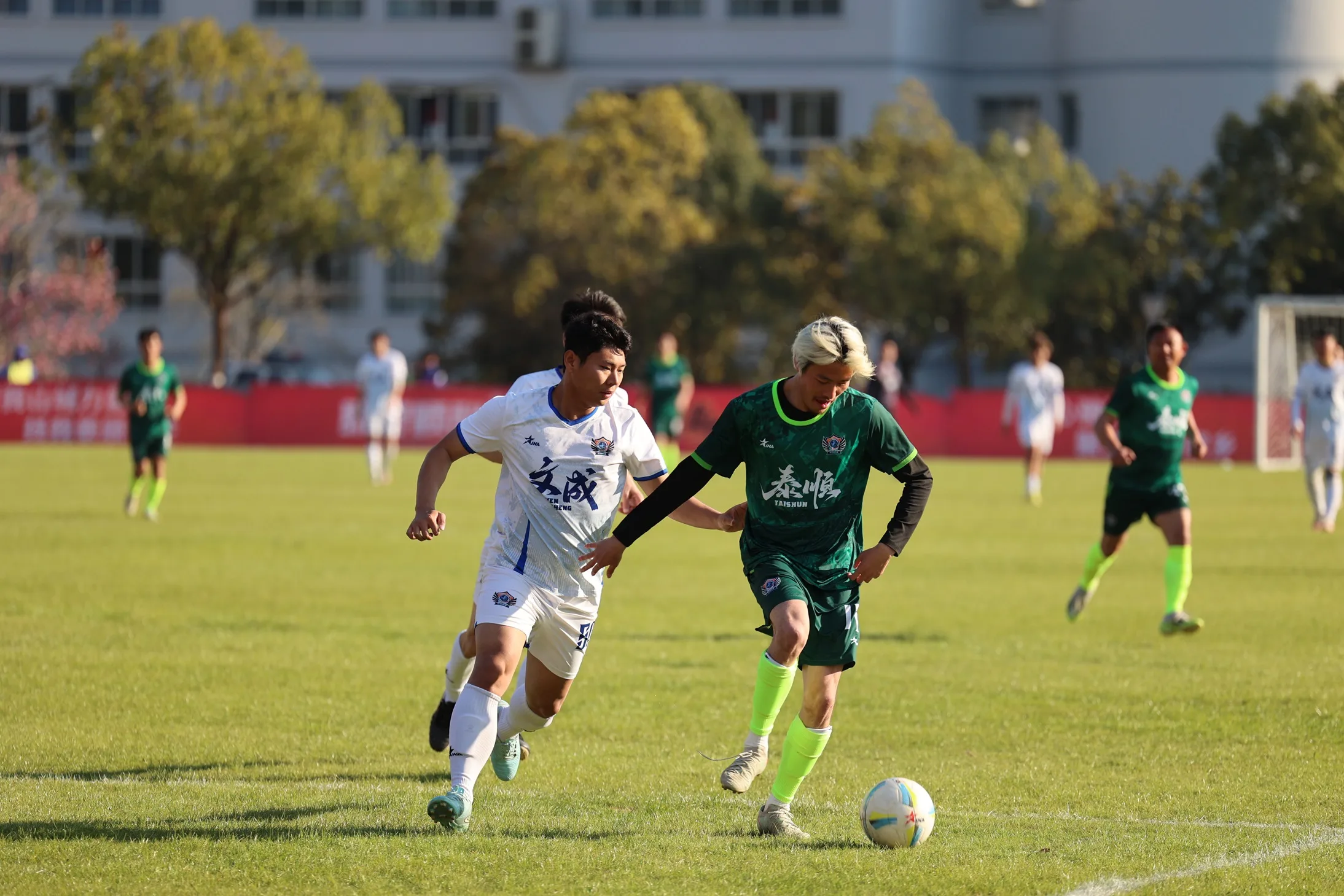 泰顺队在泰顺体育中心体育场对阵文成队。两支队伍前三轮战绩不佳,本场难兄难弟相遇,泰顺队占据主场优势。上半场,双方都没能打破场上僵局。下半场再战,第60分钟,泰顺队进攻,前锋15号陶书剑在文成队禁区内突破后摔倒在禁区里,经过视频助理裁判介入后,主裁判判罚点球,队长10号包俊伟稳稳将球罚进,泰顺队1比0领先。第62分钟,文成队进攻,11号华润涛禁区外远射击中立柱弹回,66号张浩禁区内的补射,被泰顺队门将挡回,文成队运气不佳。