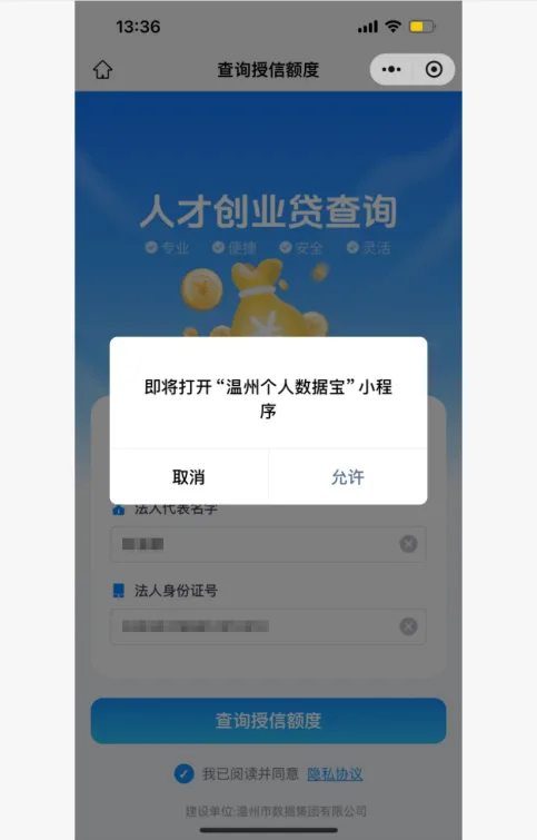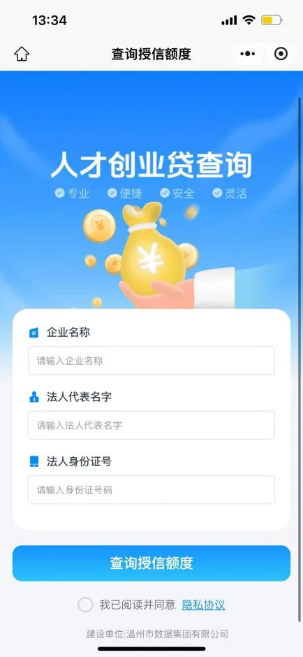 02.填写相关信息并勾选隐私协议后点击查询授信额度