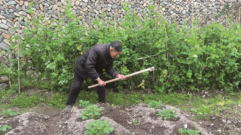 如今两人年龄相加已有200岁,却依然闲不住。罗爷爷在后山和屋前种满了蔬菜,每天扛着小锄头去地里捣腾。看着豌豆开了花,芥菜一天天见长,他语气里透着得意:“我俩吃不完,主要分给孩子们,自己种的,吃着健康。”