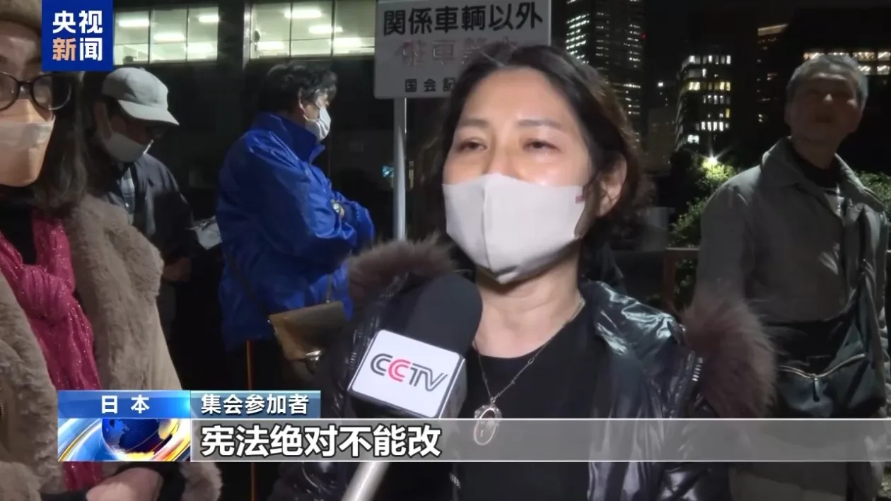 针对日本政府大幅增加防卫预算、推动修改日本和平宪法,当地时间17日,部分日本民众在日本首相官邸前举行抗议集会,表达对日本政府一系列军事扩张政策的强烈不满和担忧。