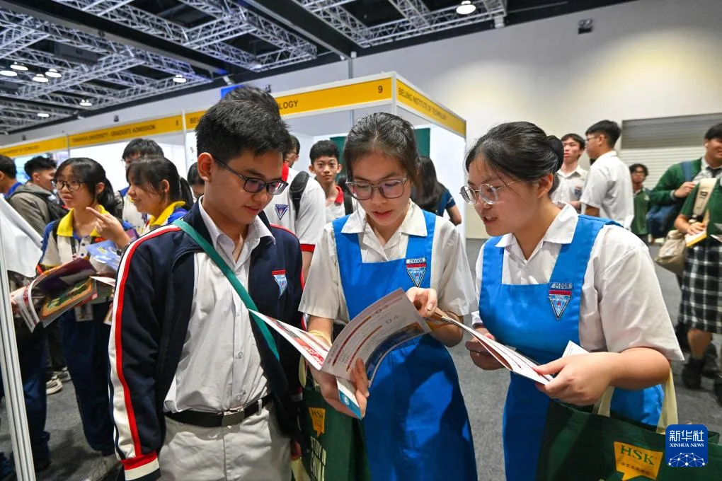 3月17日,在马来西亚首都吉隆坡,学生在2026马来西亚(第四届)HSK留学中国与就业展上查看资料。新华社发(张纹综摄)