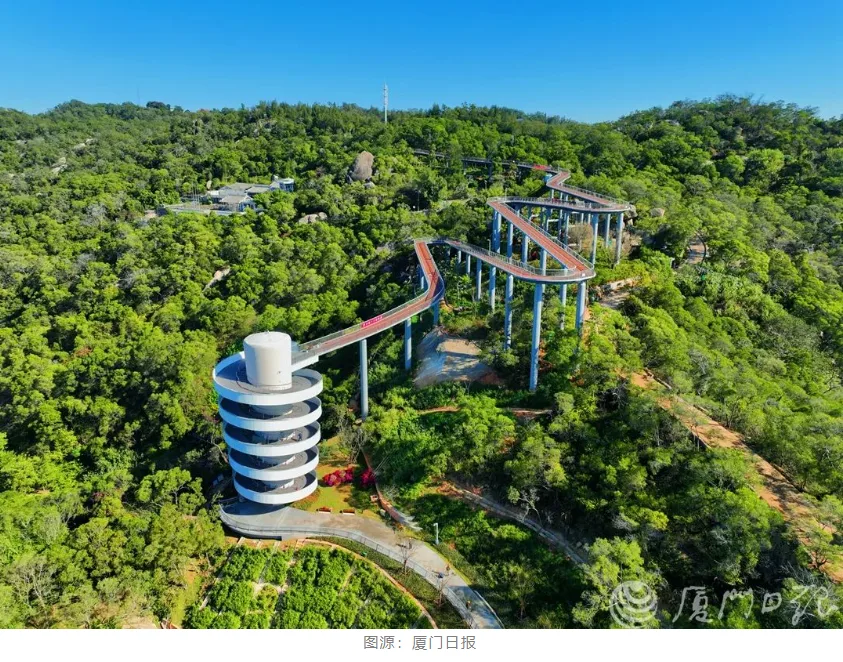 从东渡邮轮广场出发,登上狐尾山可远眺筼筜湖与城市风光,打卡电视剧《开端》同款取景地;途经螺旋造型的悠然园与融入“X(厦)M(门)”元素的园山桥,一路行至仙岳山,感受城市上空的漫步之趣。