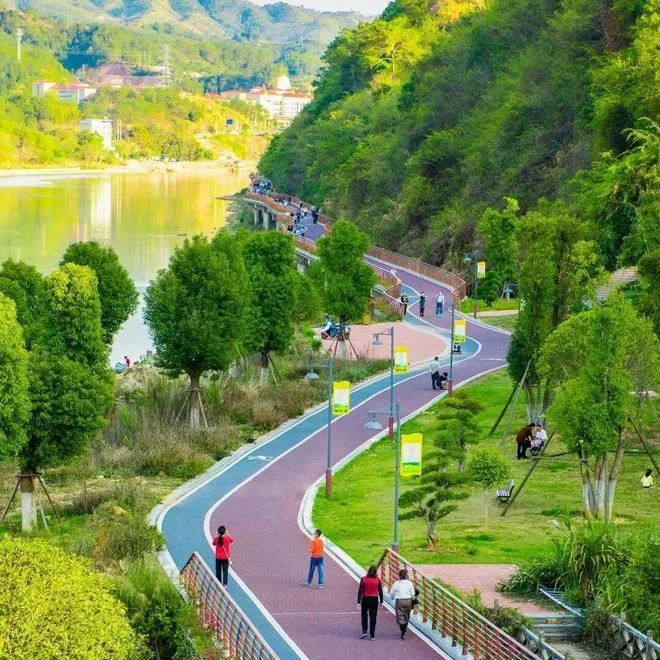 汀江,是客家母亲河;上杭汀江绿道,是这条河流畔的春日画廊。汀江绿道全长约45公里的绿道,主要利用汀江沿岸缓冲带,塑造城市内部的开放空间。以“一江、四带、十二景”为结构,构建迎山接水通廊。串联起田园、红色、客家、工业四大文化带,成为集休闲、健身、文化体验于一体的生态景观带。