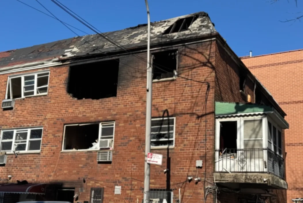 火灾发生在Avery大道132-05号,这是一栋建于1970年的老旧住宅。火势来势凶猛,三楼被完全烧空,屋顶被烧穿,整栋楼呈现出触目惊心的焦黑状态,二楼严重受损,内部几乎成为废墟。现场记者形容,“满目疮痍,一片死寂”。
