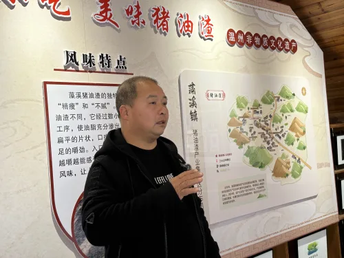 20世纪50年代,当地依托挑矾古道的商贸往来,便有屠户将剩余猪肉熬制成油渣,这款充饥便携、易储存的干粮,深受往来挑夫喜爱,也埋下了产业发展的种子。