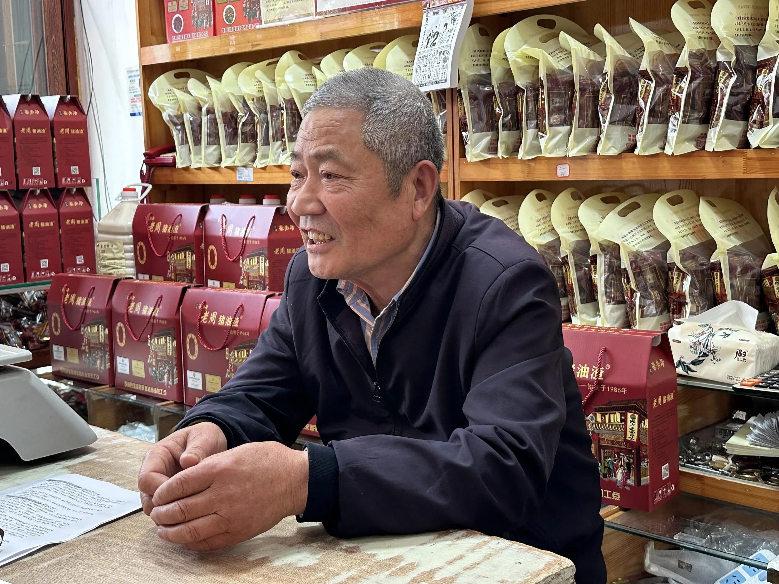 周青宣与猪油渣的缘分,始于1986年的菜市场猪肉摊。当时他卖鲜肉,五花肉如遇滞销不易保存,丢了可惜,便试着熬成油渣售卖。“当初就想少浪费点食材,压根没想着能做一辈子。”周青宣回忆。