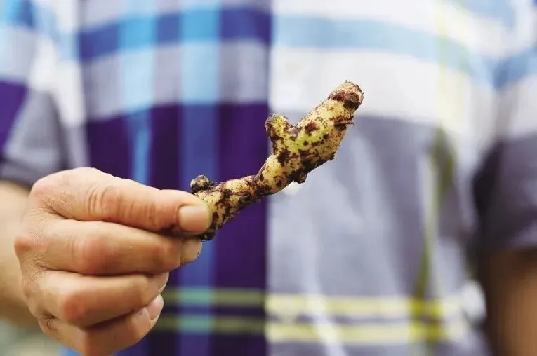 片姜黄和温莪术是“亲兄妹”,都是“瑞安户口”,核心种植区同样聚焦瑞安市,并覆盖乐清、永嘉、文成等周边县域。其根茎切片后色泽鲜亮、气味清香,是疏肝理气、通经止痛的常用药材,与温莪术形成“同源异用”的特色药材组合。